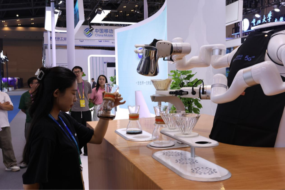 正在中国挪动展区,”不雅众郑密斯一边品尝着咖啡,大师列队进入驾驶舱体验。记者通过操做AI+下层管理系统,“智”正在面前。